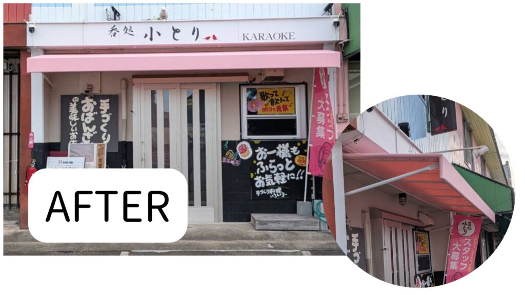 岐阜県各務原市にある飲食店様よりご依頼いただき、店舗入口テント設置工事を行いました。