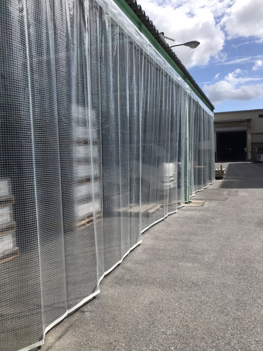 滋賀県にて、倉庫の開口部に雨雪防除用カーテンの設置工事を行いました。