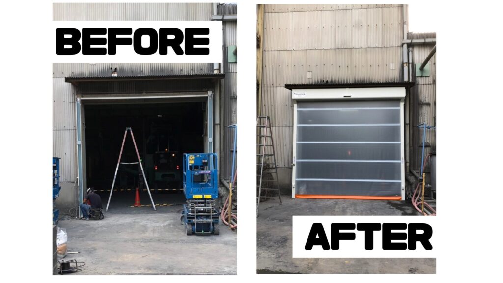 シートシャッターは、頻繁な開閉によって空調が逃げやすい環境や、防塵・防虫対策が求められる作業場に最適な設備です。