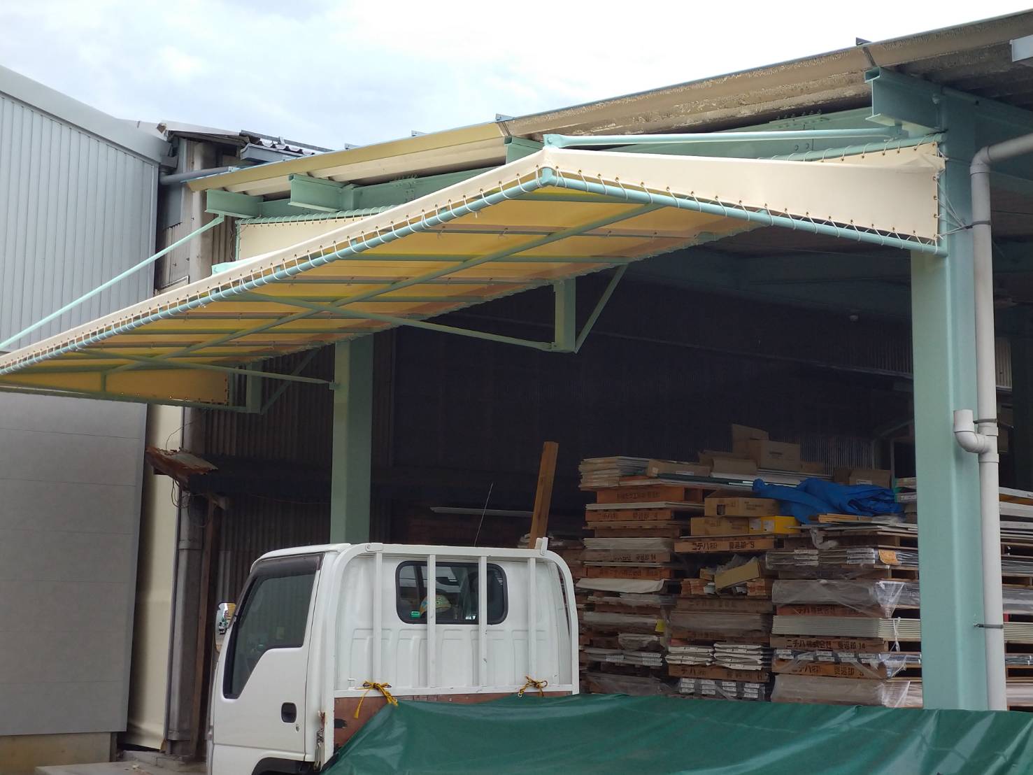 当社では、今回のような企業様の屋外作業スペースや資材置き場の雨よけ・日よけテントの