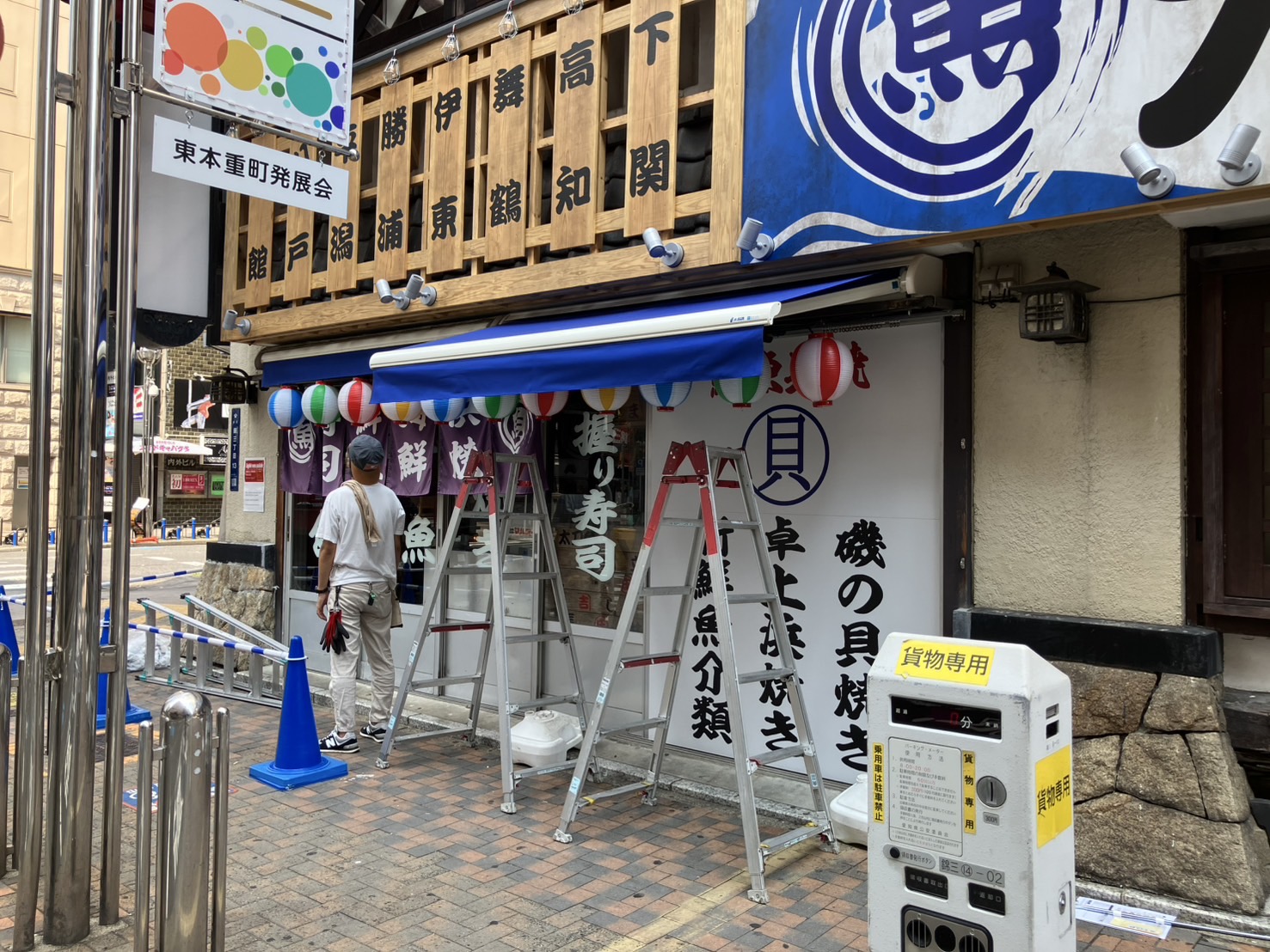 愛知県名古屋市にある飲食店様より、店舗リニューアルに伴うオーニングテント設置のご依頼をいただきました。