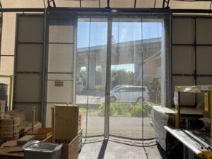 このタイプならフォークリフトや台車の出入りにも耐えやすく、埃や雨水の侵入も抑制できます。「出入口の開閉頻度が高く、すぐに破れてしまうのが悩み」という現場には特に有効です。